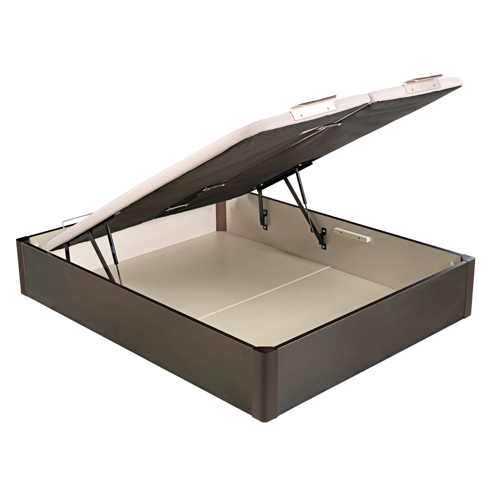 Pikolin's new wooden wengue-coloured dual-lid folding storage base has been created and adapted to the latest decorative trends, managing to provide an atmosphere of modernity and elegance in bedroom furniture. This folding storage base is formed by a single basin and folding lid. In addition, this Design folding storage base also adapts to the needs or preferences of each user. It's an easy front opening system that uses pneumatic shock absorbers.