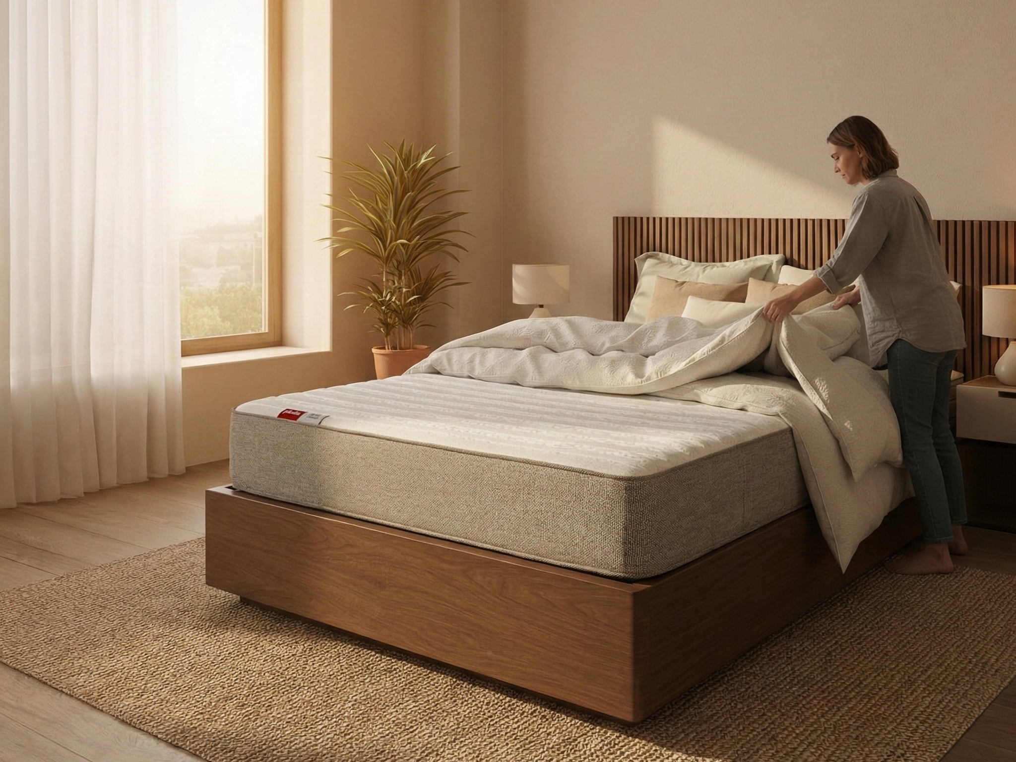 Il materasso matrimoniale, detto anche “a due piazze”, è il cuore della camera padronale. Garantisce lo spazio necessario affinché due persone possano dormire senza disturbarsi a vicenda.