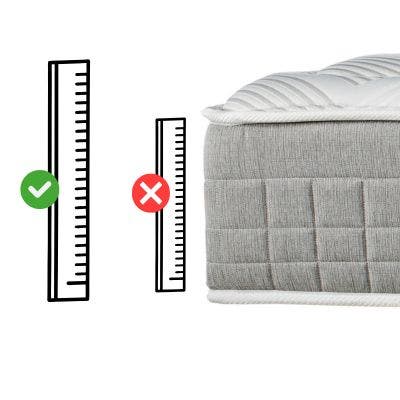 | Larghezza e lunghezza | Misura da cucitura a cucitura, al centro del materasso, da un'estremità all'altra. | Scegli una fodera e un coprimaterasso delle stesse dimensioni del tuo materasso. Ad esempio, se hai un materasso di 60x120 cm, il coprimaterasso che devi scegliere è di 60x120 cm. |