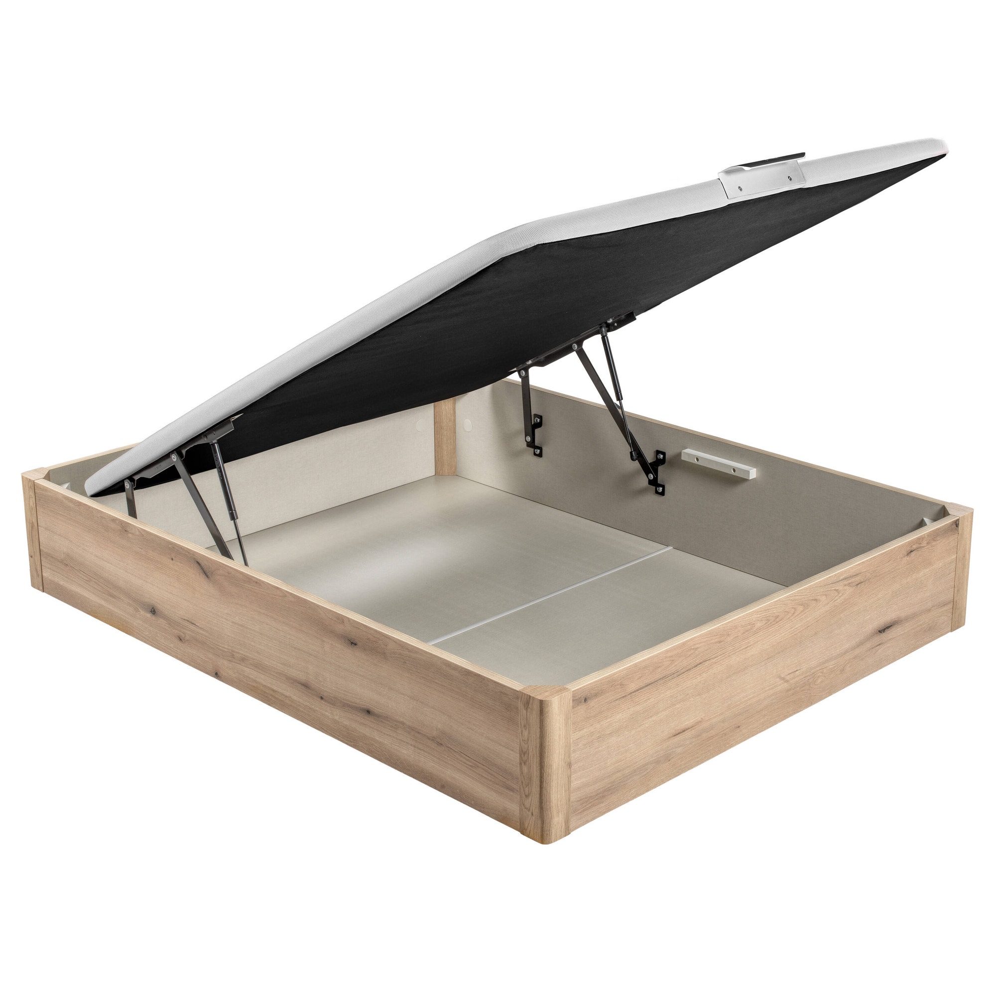 Sommier de madeira com arrumação e tampa única em cor carvalho - DESIGN