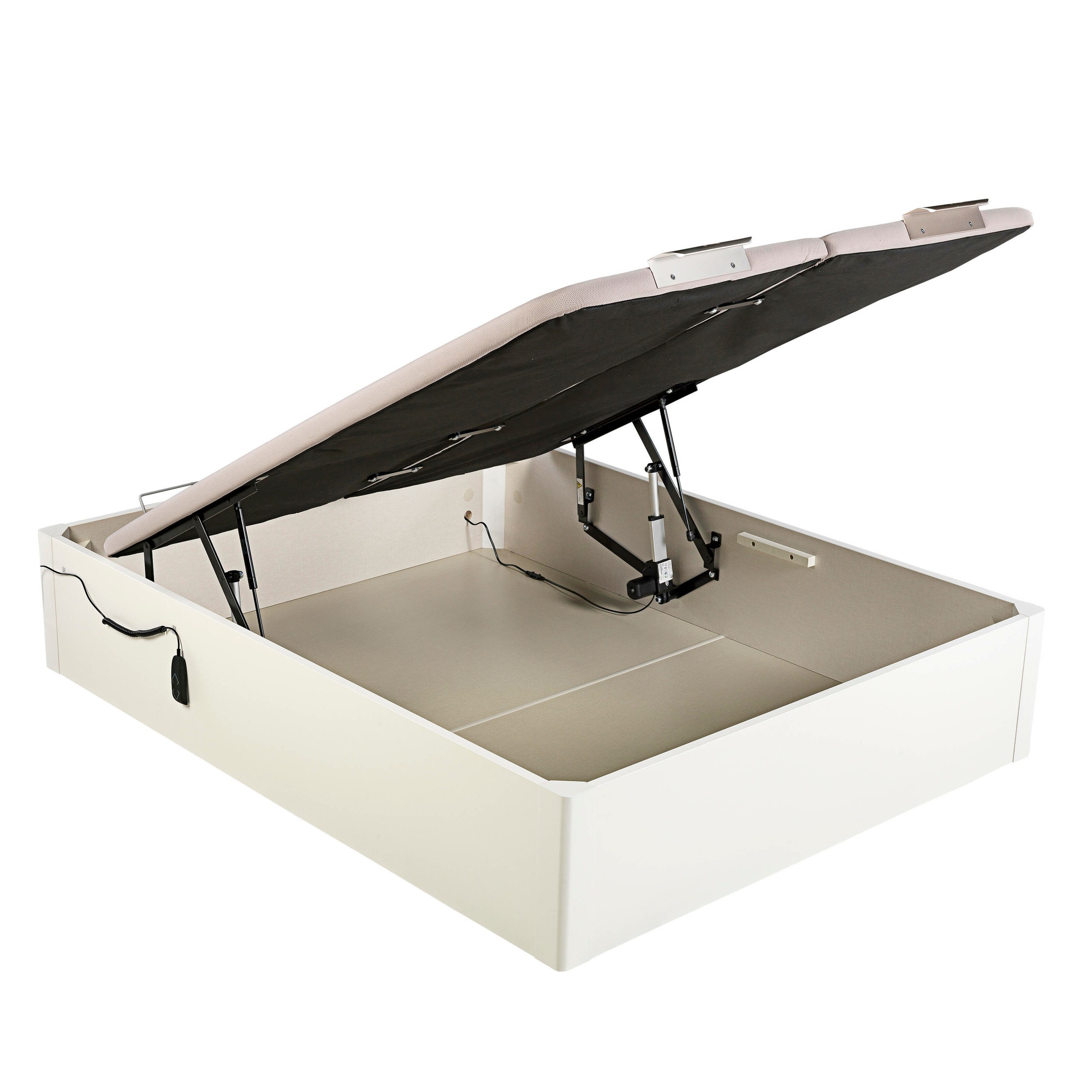 O sommier de madeira elétrico com arrumação de alta capacidade e tampa única em cor branca é a melhor opção por ser decorativo, prático e ergonómico. Foi criado e adaptado às últimas tendências de decoração, proporcionando modernidade e elegância ao mobiliário para quartos. Este sommier com arrumação é composto por uma única caixa de arrumação e duas tampas rebatíveis. Graças ao seu sistema elétrico e a um sistema adicional de fixação do comando, este sommier oferece uma variedade de características para uma melhor utilização. A caixa de arrumação foi adaptada para ocultar os fios elétricos fora da arca. Além disso, em caso de emergência, pode ser aberto manualmente se não houver eletricidade. O sommier é fechado através da gravidade, e não por tração, para evitar entalamentos.